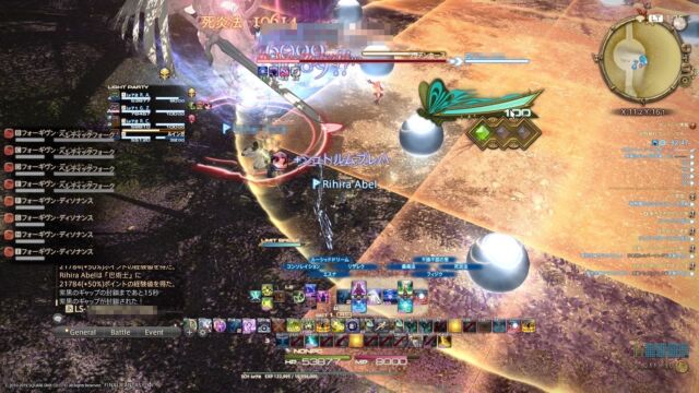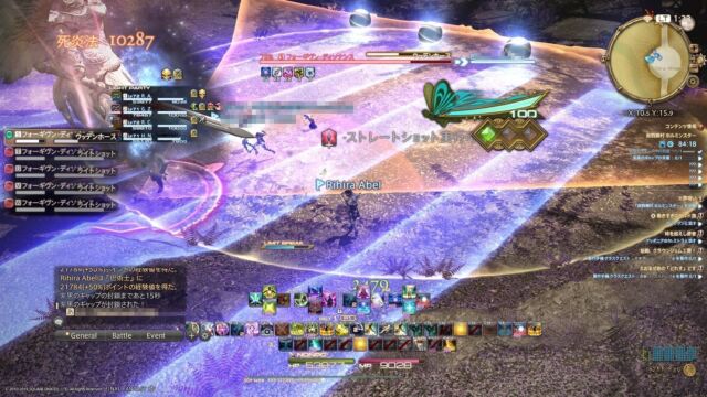 玉の攻撃と同時くらいに、ボスからの扇型範囲攻撃や直線範囲攻撃がきます。