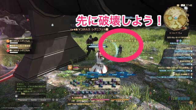 敵の中には魔導兵器が複数いますが、こいつらにダメージを与えるには“魔導フィールド発生器”を先に壊す必要があります。