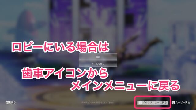 ロビーにいる場合は歯車アイコンから戻り、リストを開いて選択しましょう。