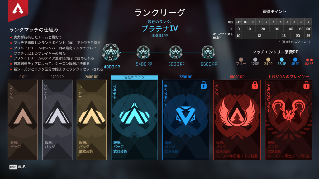 ブロンズ帯のうちは消費するRPがないので、この階層のうちに経験を積んで慣れておきましょう。
