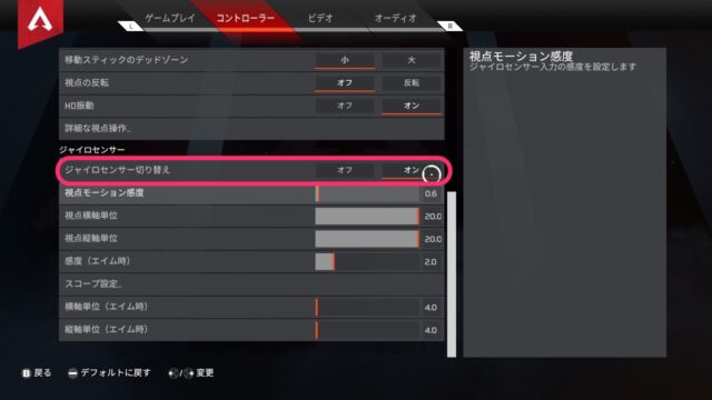 コントローラーにジャイロ機能があると反映されるので、オフにしておいた方が良いです。
