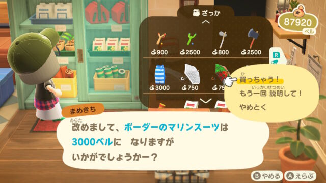 たぬき商店の場合は棚に陳列されており、価格は3000ベル。