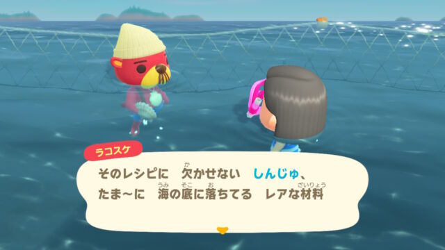 泳いでアイテムを集める以外に、「ラコスケ」という新キャラに巡り会えるケースも。