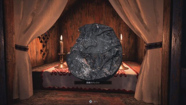 屋敷の門のそばにある物置?の鍵をドライバーで外し、「悪魔のクレスト」を入手。