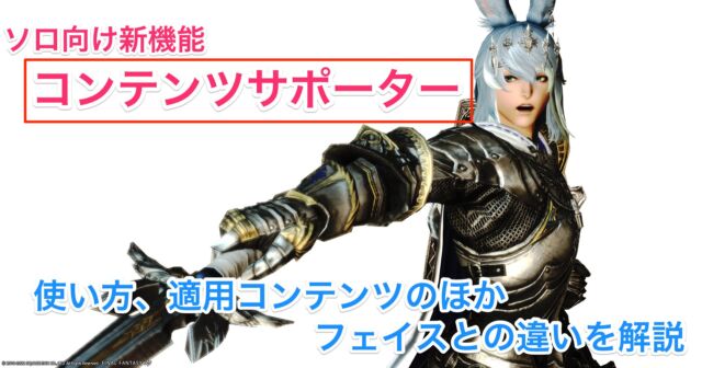 パッチ6.1から実装されたシステム「コンテンツサポーター」。 ソロプレイをより円滑にする機能です。 基本的な使い方のほか、フェイスとの違いも見ていきましょう。