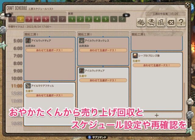 【FF14】無人島開拓「開拓工房」の使い方|工房スケジュールの基本紹介