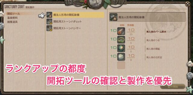 ツールの製作を最優先で行い、新しい素材を獲得できる状態にしておきましょう。