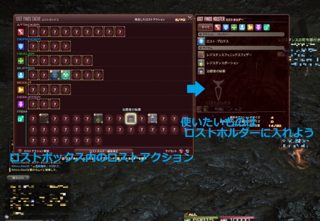 入手したロストアクションは、必要なものをロストボックスからロストホルダーに入れておきましょう。