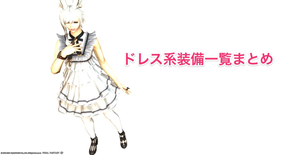 FF14内における「ドレス」「スーツ」系の装備をまとめています。ミラプリやSS用に、おしゃれでかわいいコーデの装備を探している方は、参考になれば幸いです。ワンピースタイプが好きな方にもおすすめです。