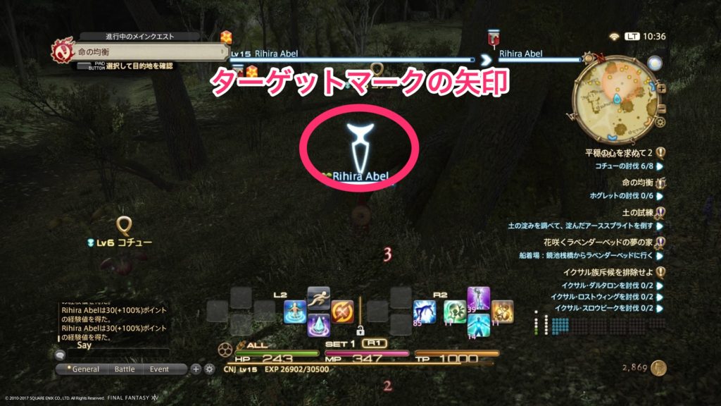 ターゲッティングの際は、画像のように頭上の矢印がどこにあるか確認を。