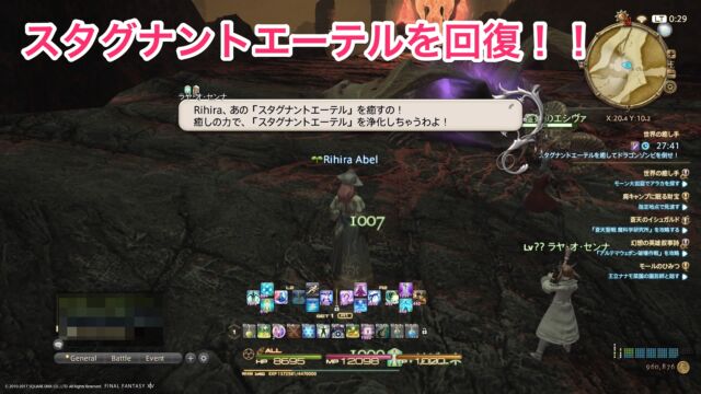 ドラゴンゾンビを倒すと、スタグナントエーテルにケアルなどで回復するターンがきます。