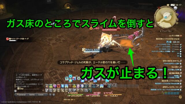 さらにコラプテッド・ジェル(黄色いスライム)の雑魚敵が出現するので、ガスが出ている場所で倒しましょう。