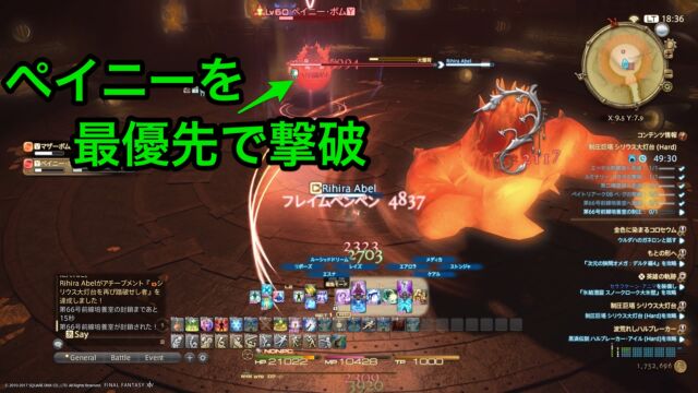 途中でポップする雑魚ですが、一定時間すると大爆発する“ペイニーボム”から優先して倒しましょう。