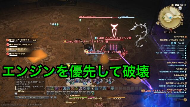 さらにフェーズが進むと、アルケミストエンジンが出現してボスと線で繋がれます。