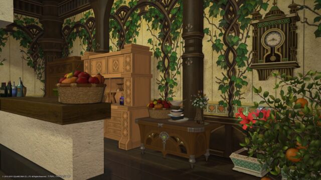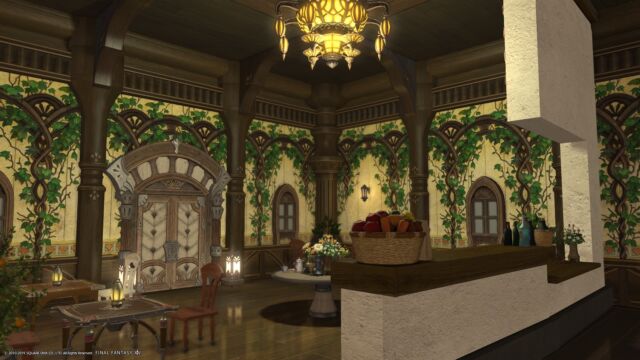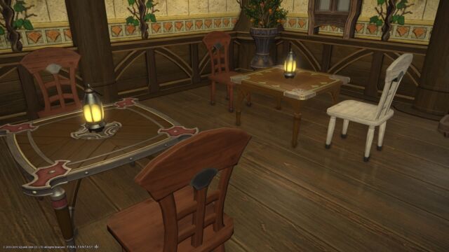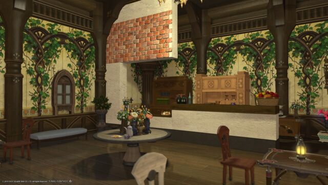 基本はウッド調の黒衣森スタイルで、シャンデリアもそれに合わせた形です。