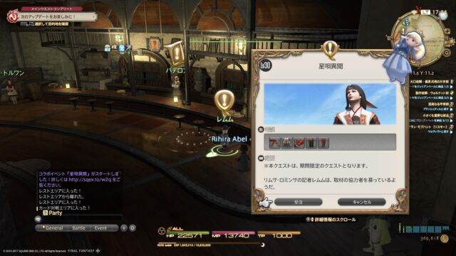リムサ・ロミンサ:上甲板層にいる寅奉行(X11.5Y13.9)に話しかけて、イベントクエストを受注しましょう。