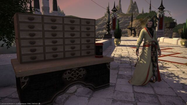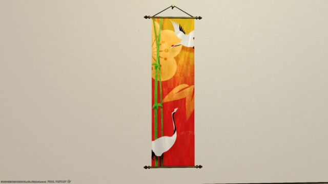 シーズナルショップのNPCからは、ハウジング用の雑貨アイテム「降神祭祝鶴朱御旗」が購入できます。