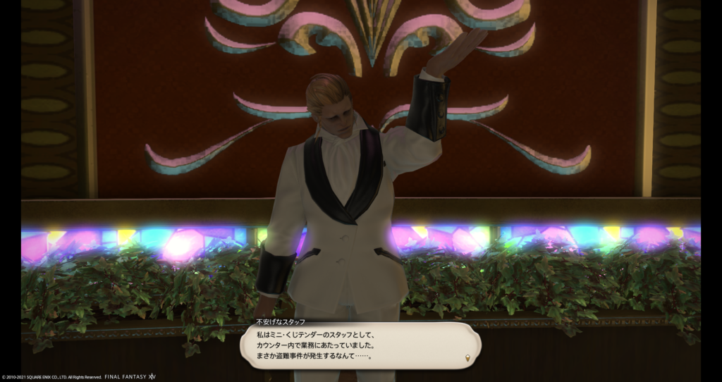 - 盗まれたスタッフスーツは、ララフェル族のものだから