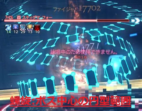 ボスが環状 → ボス中心のドーナツ型範囲攻撃。ボスに寄る