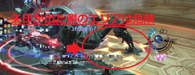矢印が出た側のエリア半分に範囲攻撃