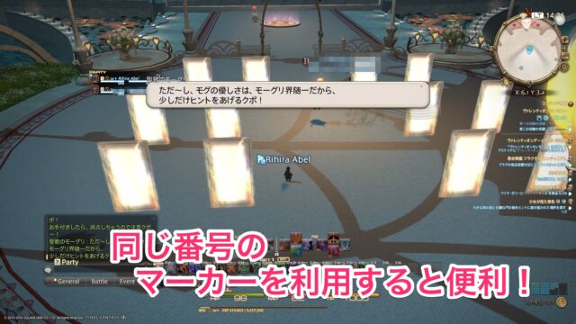 アストリドに話しかけたら、旧市街の指定地点にいるモーグリ達を探し出します(それぞれ幻術士ギルド、園芸師ギルド、槍術士ギルドの近く)。