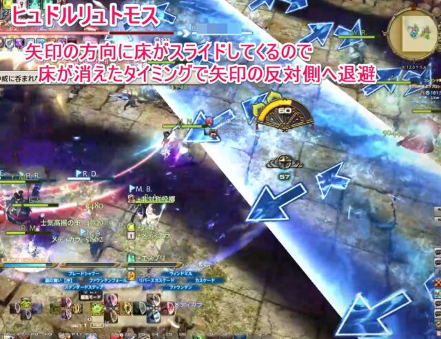 ベヒーモスによるタンク頭割攻撃、距離減衰攻撃→直後にボスから前方へ扇型範囲攻撃などがあります。