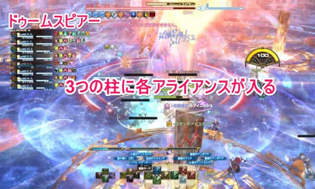 ドゥームスピアー 3つの柱がポップ+頭割。アライアンスごとに集合して受ける