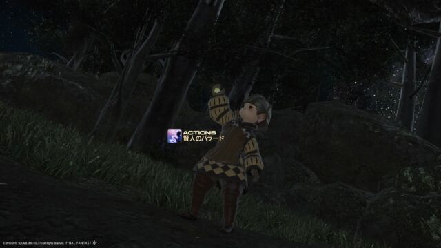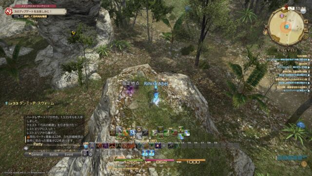 クォーリーミル西のジェアンテルより受注。東ラノシア・レインキャッチャー樹林の指定地点を調べて雑魚戦です(指定地点は岩の上)。