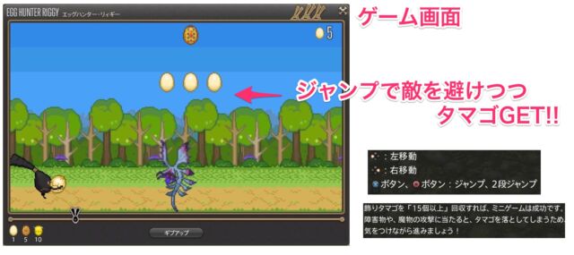 以降は宿屋のトイボックスより「エッグハンター・リィギー」のミニゲームが遊べるようになります。