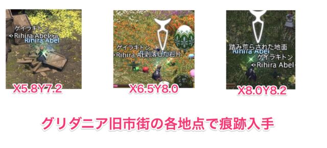 園芸師ギルドの近くにいるエッグキャップの狩人(レイ・アリアポー)と話したら、指定地点内にあるタマゴ泥棒の痕跡を3つ探します。