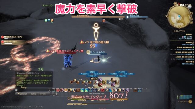 エスティニアンに魔力が触れると攻撃力上昇などのバフが付与されてしまうので、接触前に素早く撃破しましょう。