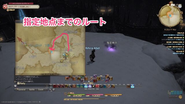 ここでの指定地点への行き方が迷いやすいですが、ドラゴンヘッドを北東側から出て上から回り込むとたどり着けます。