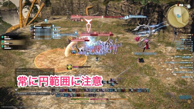 画像のように範囲攻撃が多く同時にくる場面もあるので、落ち着いて対処しましょう。