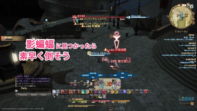 道中にいる影蝙蝠にはかくれるが無効で見つかってしまうので、他の敵を巻き込まないよう処理しましょう。