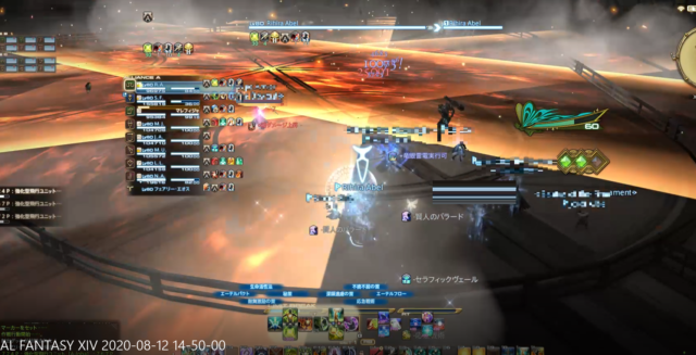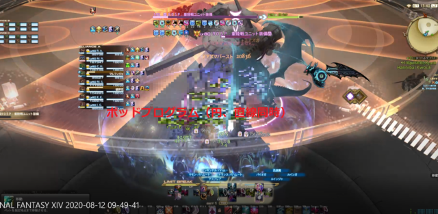 スベテヲヤキツクス(無詠唱) … 同セリフとともにボスが外周に移動。ボス球体の真ん中が安地で、赤線が出ている箇所は全て薙ぎはらう。南北どちらかと東西どちらかに1つずつ出現し、球体の中央がクロスする箇所が安地