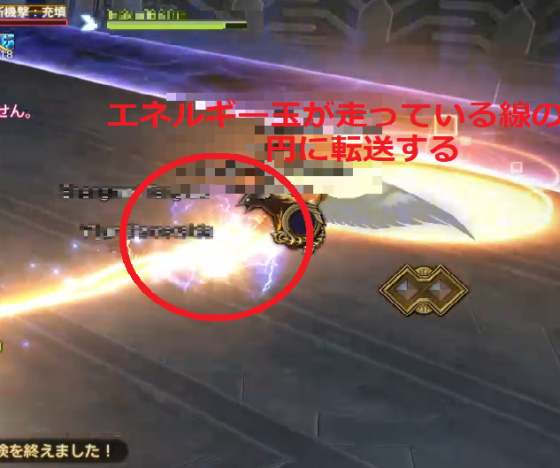 ボスと円は線で繋がれますが、ボスが転送する円と繋がれた線には、エネルギー玉のようなものが走っています。これを目安に転送先の円を探しましょう。ボスが転送後、各構えに応じた攻撃を行うので、それぞれの安地に退避します