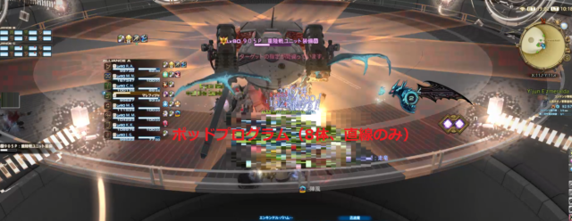 オペレート:ポッドプログラム … 出現したポッドから範囲攻撃。基本形は8体の直線範囲か、4体の円形範囲。範囲に当たらないよう、ポッド同士の間辺りの外周よりで回避。