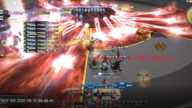 攻撃:高出力レーザー … 縦ライン頭割り。ボスから発射されるので、対象者は外周に向けておく。