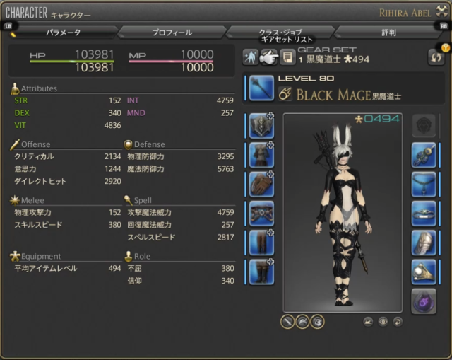 その時の装備やステータスは画像の通りです。