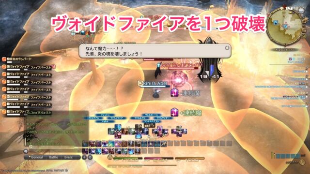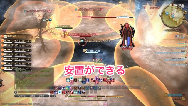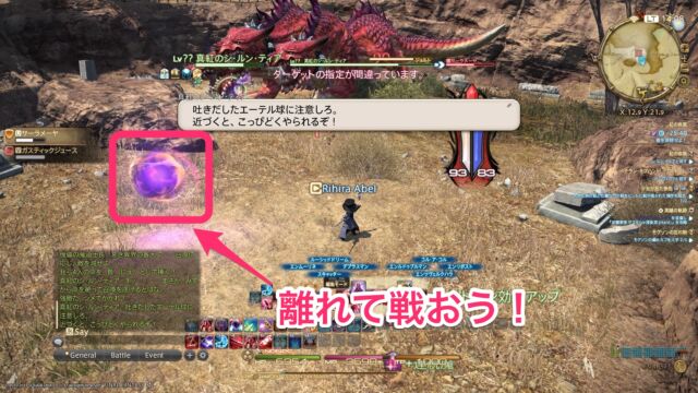 どれか1つを倒せば安地ができるので、アリアのそばにある球を破壊して安地に避難しましょう。