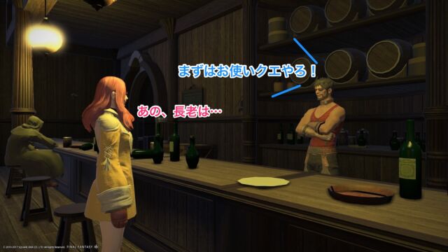 バスカロンに酒を届けて、ようやく長老の情報までたどり着きました。