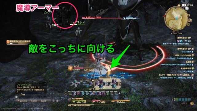 敵兵器が魔導アーマーを狙うので、その後ろ側に立つと冒険者に向けられる範囲攻撃を魔導アーマーに向けずに済みます。