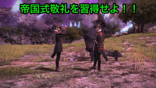 兵たちが挨拶として使う「帝国式敬礼」のエモートを習得するべく、カストルム近くの指定地点へ。