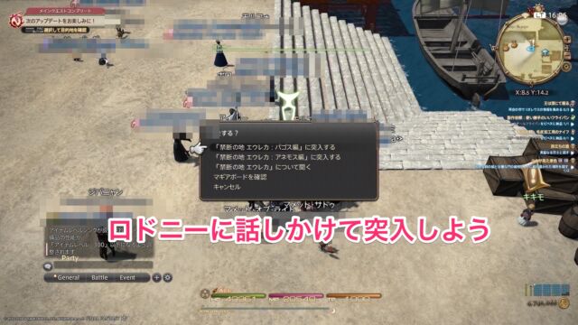 実際に突入する際はクガネのロドニーに話しかけてパゴス編を解放し、あとはアネモス編と同様にロドニーに話しかけて突入しましょう。