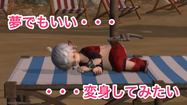 FF14漆黒のヴィランズ、アーリーアクセスがスタートしました。早速幻想薬をかっこみ、待望だった“ヴィエラ”への変身を果たしましたよ。