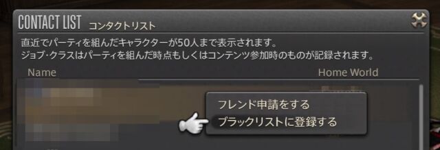 考え方やプレイスタイルが合わない人に出会ったときは、そっと「ブラックリスト(BL)」に入れることで余計なストレスを回避可能。