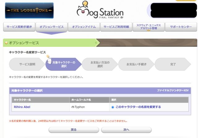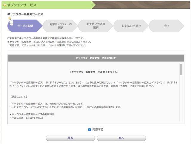 2. オプションサービス→キャラクター名変更サービスへ進む