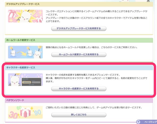 ▼キャラクター名変更サービスを利用する
