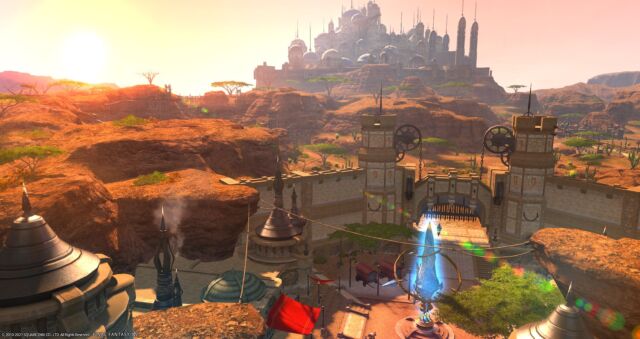 褐色の大地とそこに佇む砂都ウルダハ、とても神秘的ですね。