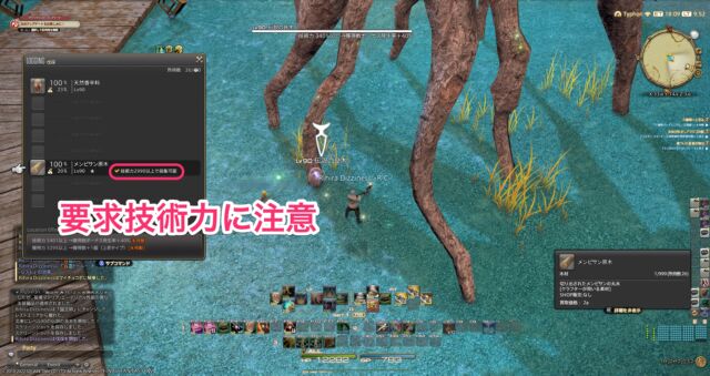 調べる前に、GPが回復しているか、所持品枠に余裕があるか、技術力を満たしているかを必ず確認しておきましょう。